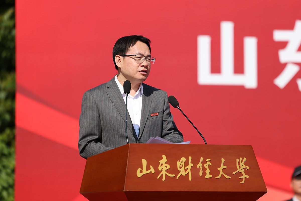 洪俊杰致开幕词。他指出,体育精神的核心在于拼搏、坚持与超越。这种精神不仅闪耀在运动场上,更深深融入学校改革发展的血脉之中。过去的一年,全校师生以同样的信念和韧劲,不懈追求,奋力前行:经济与计量经济学学科上榜2026QS世界大学学科排名,位列全国高校第45名,实现历史性突破;应用经济学在软科排名中进入全国前7%,位列全省第一;发布人工智能赋能教育教学3.0版本;获批20门国家级一流本科课程,数量并列全国财经类高校首位;获批46项国家级项目,首次获批中央“马工程”重大、重点项目;《经济与管理评论》首次入选CSSCI来源期刊;“人文经济学实验室”成功获批山东省首批哲学社会科学重点实验室;中国经济研究院、中日韩研究院入选省重点新型智库。这些成绩,正是全体山财大人把“更快、更高、更强——更团结”的体育精神转化为办学动力的生动写照。