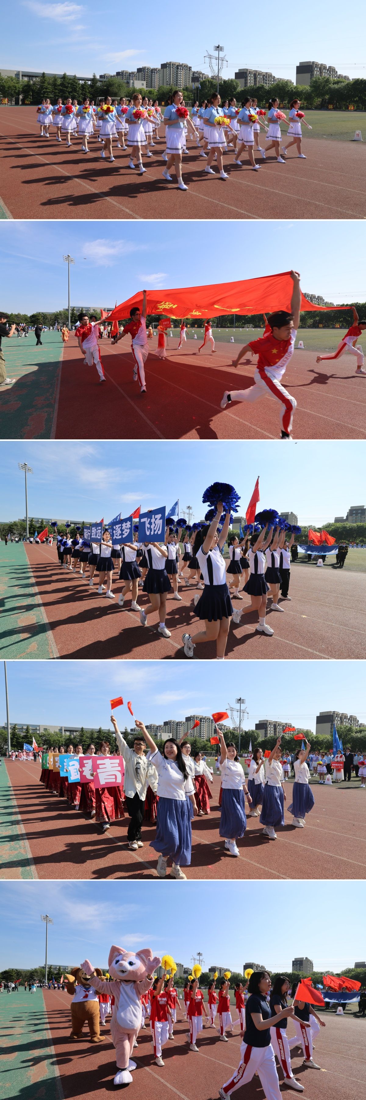 上午8时30分,伴随着激昂奋进的《运动员进行曲》,国旗队、红旗队、花束队、各学院代表队依次走过主席台,整齐的步伐、嘹亮的口号,展示了我校师生英姿勃发的精神风貌。