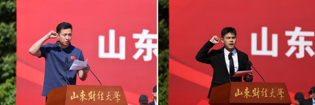 裁判员代表、体育学院教师孟子旭,运动员代表、2023级管理科学与工程学院物流管理专业学生杜状状分别代表全体裁判员、运动员宣誓。